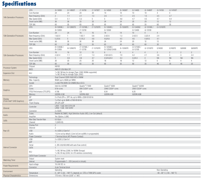搭载NVIDIA Quadro 嵌入式级别T1000/A500/A2000 MXM显卡或Intel Arc A370M MXM显卡
